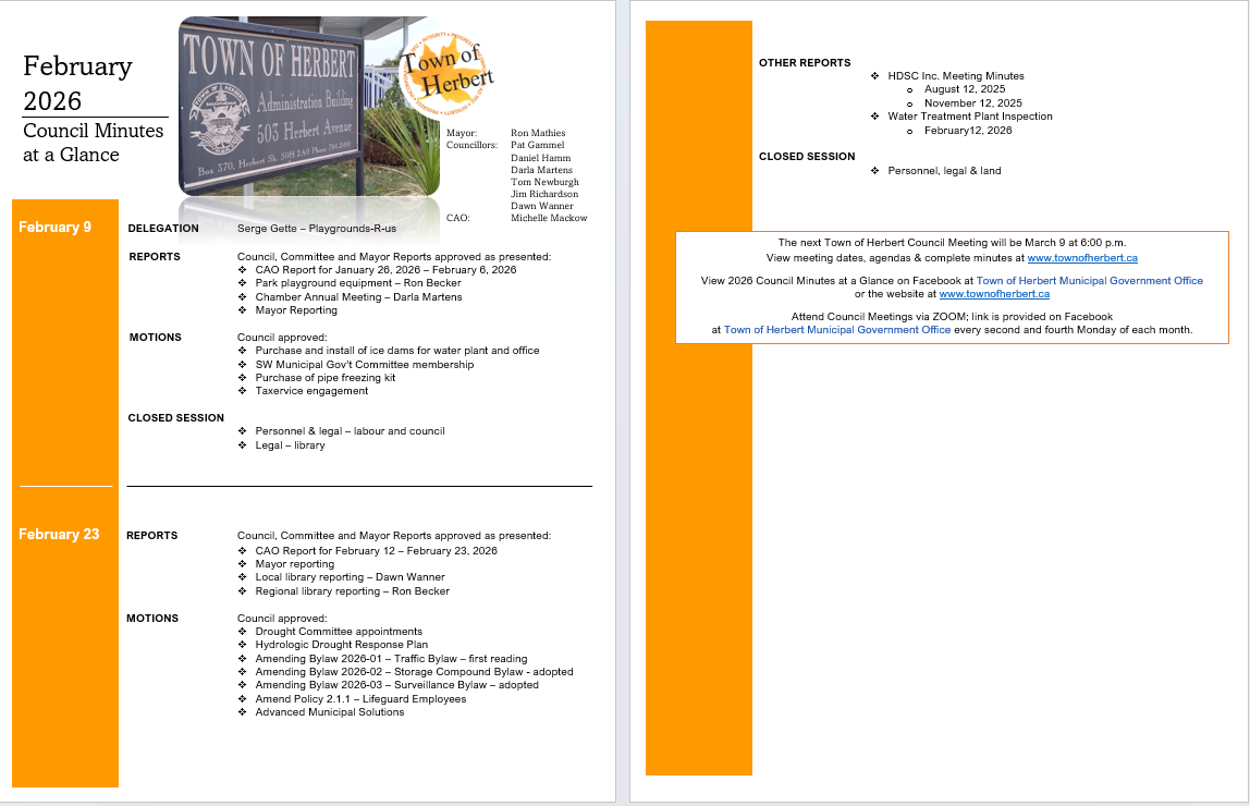 Welcome to the Town of Herbert